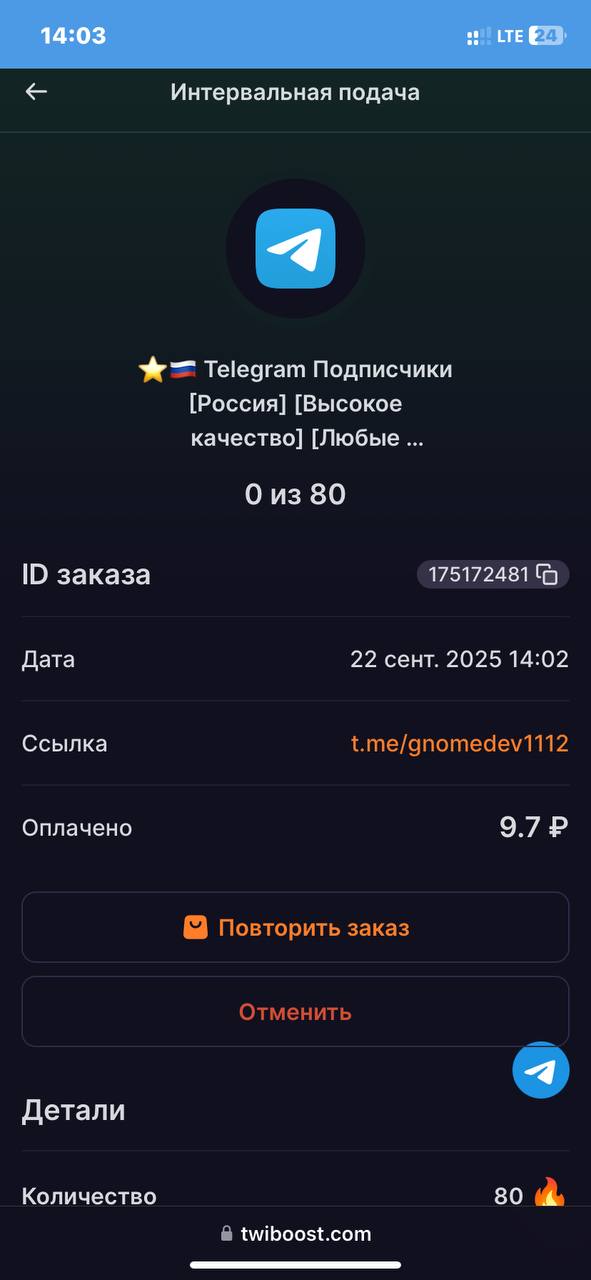 Сильно сомневался, думал, кинут или аккаунт заблокируют. Но все окей! Заказывал накрутку подписчиков для канала, сделали быстро, даже чуть больше накинули. Цены адекватные, саппорт отвечает. Теперь буду только у них заказывать. Рекомендую!