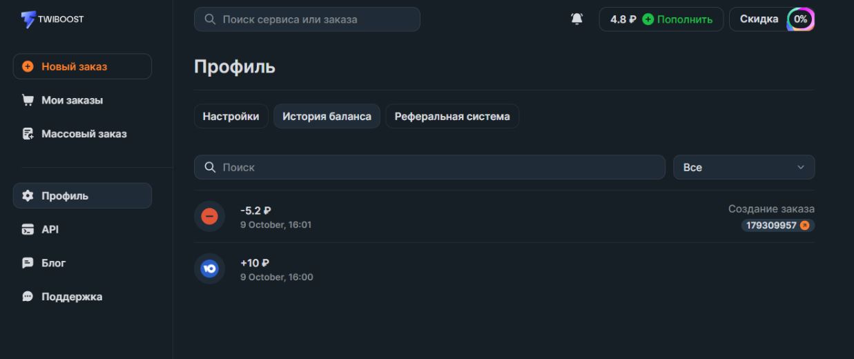 Мне посоветовали этот сайт Twiboost, ну я и решил крутить там. Сначала крутил себе на телеграмм канал, реакций и просмотры. Все заказы выполнялись не больше часа, независимо от количества. Потом узнал что там есть api, а это отлично, я привязал его к боту и начал иметь с этого еще и прибыль.